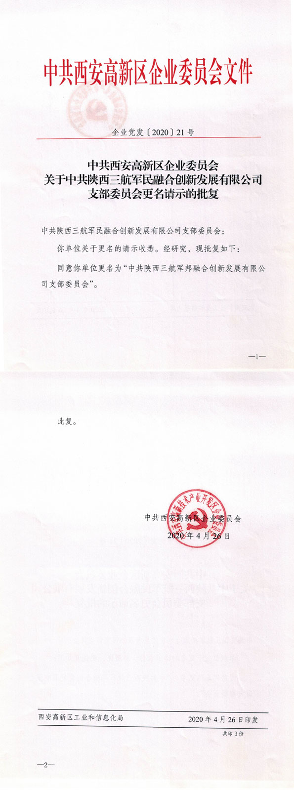 中(zhōng)共西安(ān)高新(xīn)區(qū)企業委員會文(wén)件